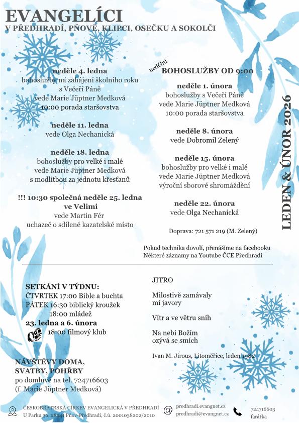 Program Farního sboru Českobratrské církve evangelické v Předhradí, Pňov-Předhradí, U Parku 53